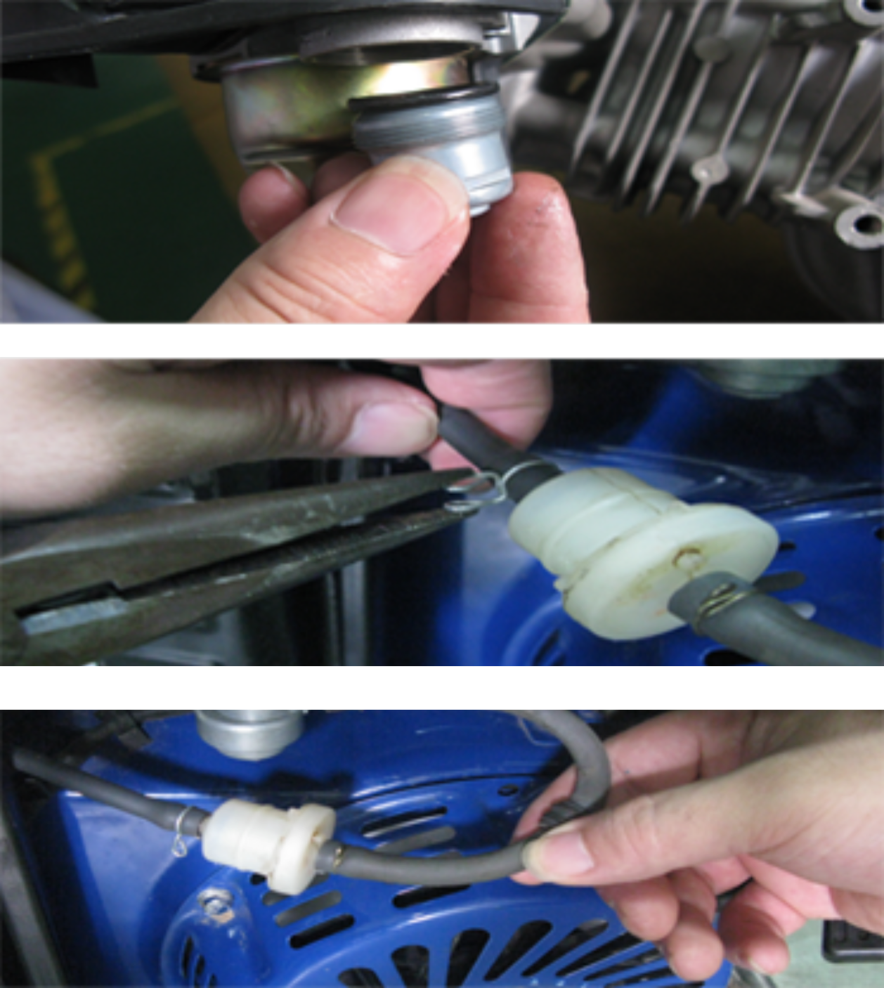 4. Turn on fuel tap to check whether there is oil leakage. If there is oil leakage, replace O-ringgasket.