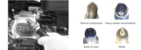 1) After the engine works for a period of time, if the skirt of the insulator of the sparking plug is rust (i.e. red brown), it indicates the engine works normally, the carburetor has no fault and combustion is good.